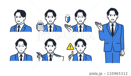 スーツを着た若い女性の表情アイコンイラストセット素材