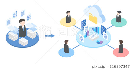 クラウドによるデータ共有によって仕事の属人化が解消されるイメージ