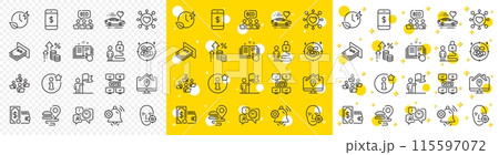 Dirty mask, Dating app and Voting campaign line icons for website, printing. Phone ui interface. Collection of Teamwork, Interview, Opinion icons. Vector