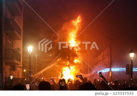 Spain, Valencia. Falla. March 19, 2023, Celebration of Falla in Valencia on March 19, 2023, With Crowds Gathered to Witness the Burning Effigy