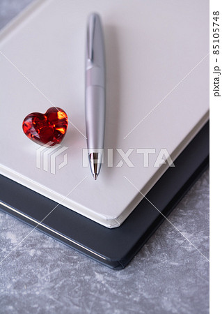 ハードカバーのノートとボールペン