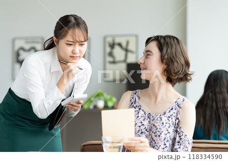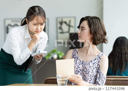 外国人と会話する日本人女性と英単語イメージ 英会話
