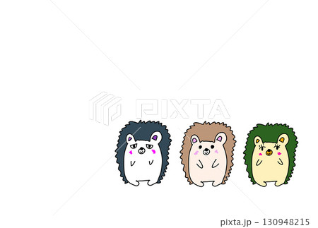 3匹の仲良しハリネズミの手描きデジタルイラストB
