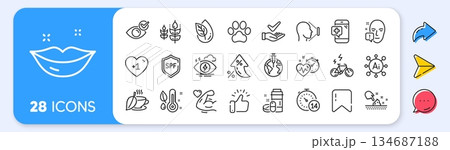 Medical phone, Skin moisture and Organic product line icons. Interest rate, AI generate, Inflation icons. Pack of Quarantine, E-bike, Stress icon. Pandemic vaccine, Lips, Gluten free pictogram. Vector