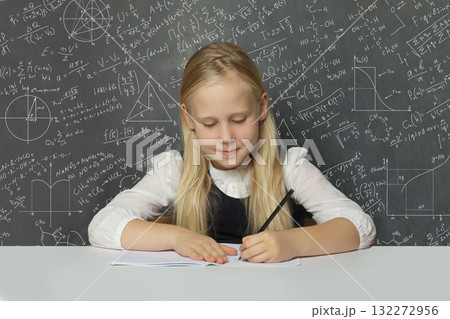 Portrait of a Young Girl with Braided Hair and Snowy Effect Against a Gray Background