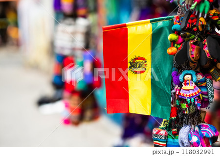 Closeup of small Bolivian flag