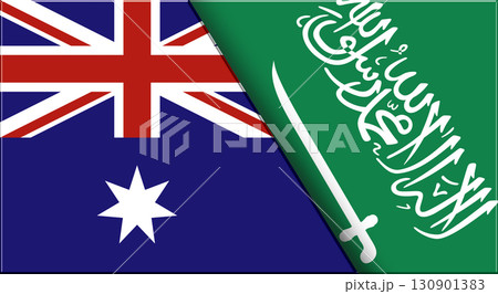 Flags of Australia and Saudi Arabia. 3D illustration. and Arabian National flags