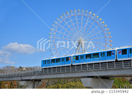 《愛知県》長久手市都市風景 愛・地球博公園の観覧車と愛知高速交通東部丘陵線(リニモ)
