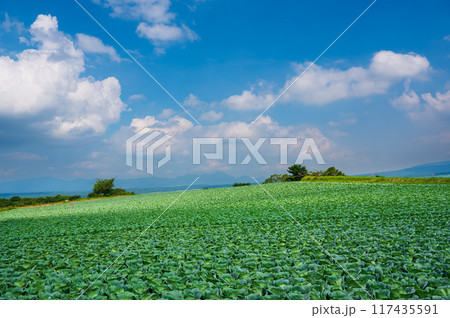 群馬県嬬恋村カラマツの丘のキャベツ畑