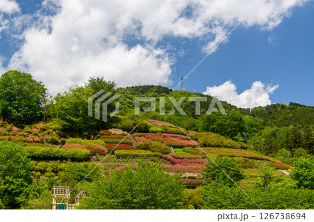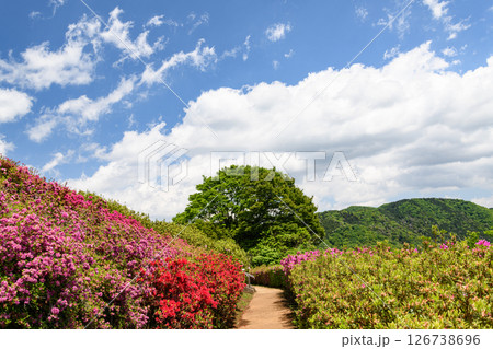 満開のつつじの公園風景