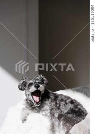 あくびするミニチュアシュナウザー