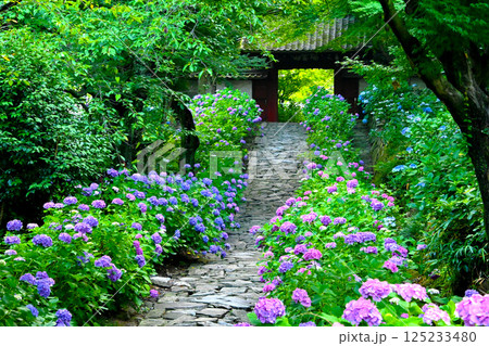 風情ある石畳とあじさいの参道 瑞雲山本光寺