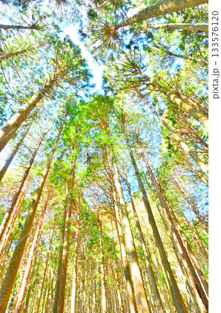 愛鷹山塊の越前岳 空高くのびる杉林
