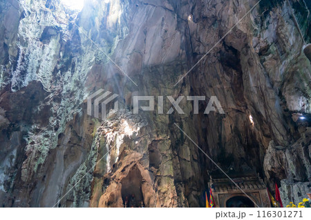 ベトナムダナンのマーブルマウンテンと呼ばれる大理石で出来ている五行山の洞窟の穴と壁の祭壇