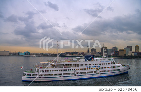 日本の横浜都市景観 新型肺炎・観光船が「Yokohama Stand by You!」などと横断幕