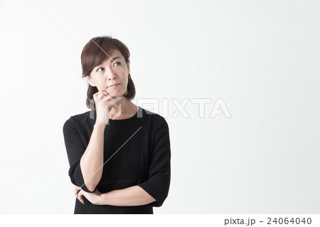 日本人女性が喪服で合掌する