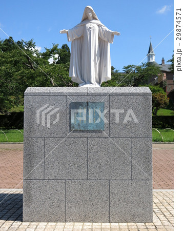 屋根の上の聖母マリア像の風景_函館