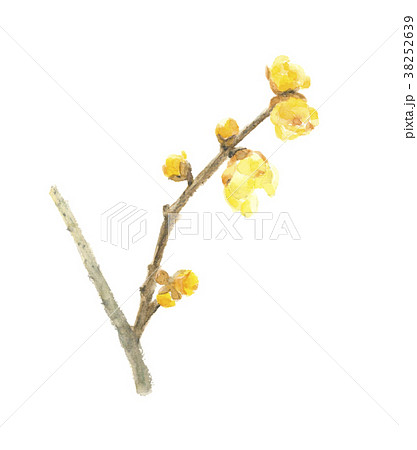 水彩 ロウバイ ろうばい 蠟梅 花 植物 素材
