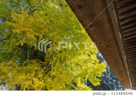 日本 福島県喜多方市慶徳町新宮の新宮熊野神社の大銀杏と熊野神社長床