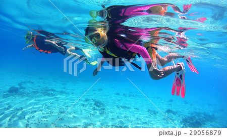 沖縄 阿嘉島の水中写真 シュノーケルをする親子