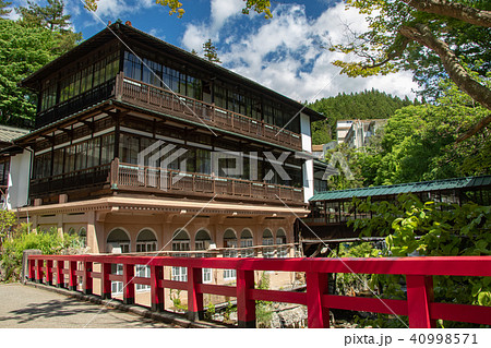 赤い橋と四万温泉積善館