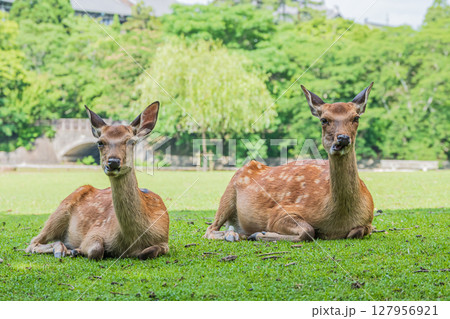 木陰で憩う鹿(メス) 奈良公園荒池園地