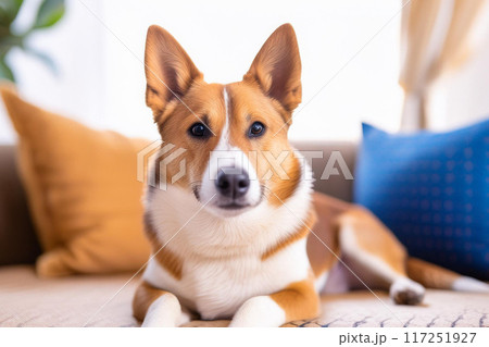 ソファに座るイヌ