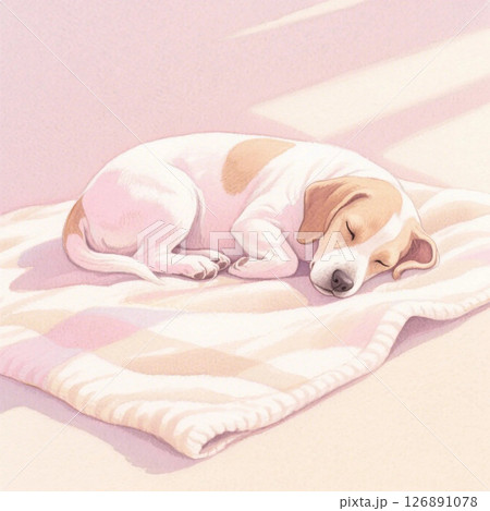 タオルの上で気持ちよさそうに寝る犬