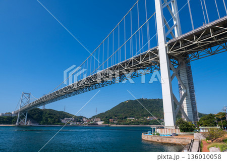 Kanmon Bridge against blue sky, Kitakyushu, Fukuoka, Japan