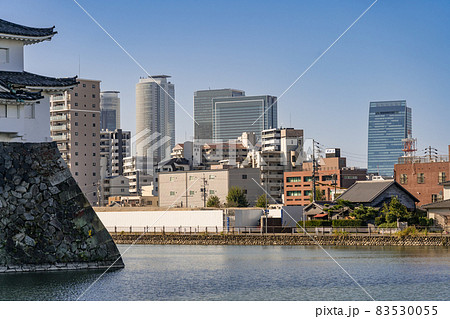 名古屋城 西北隅櫓 ホテル ナゴヤキャッスル 跡地から見る名古屋駅前高層ビル群