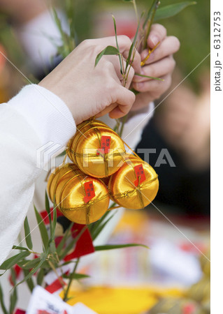 縁起物の福笹 えべっさん 大阪今宮戎神社 商売繁盛の神様 十日戎の風景 御神徳飾り イメージ素材