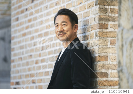 カメラ目線で微笑む50代半ばの男性 ポートレート