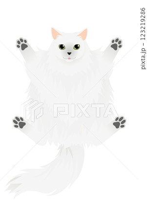 長毛種の猫、シルバー系のサイベリアンがへそ天しているイラスト