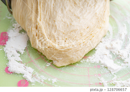 ホームベーカリーから取り出した1次発酵後のパン生地