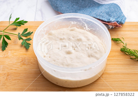 ホームベーカリーから取り出した1次発酵後のパン生地
