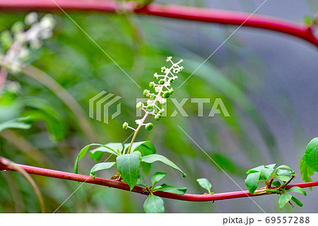 赤い茎のヨウシュヤマゴボウ