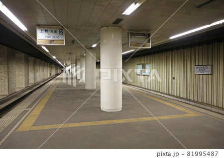 日本の東京都市景観 京成上野駅や西郷銅像下公衆トイレなどを望む