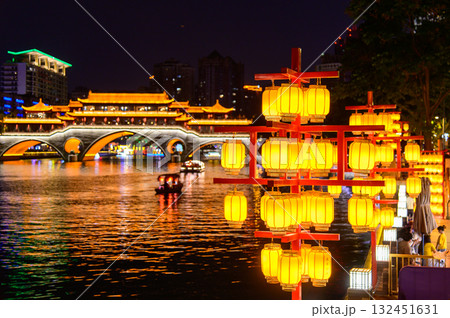 安順廊橋から九眼橋方面~繁華街夜景~(成都市-中国)