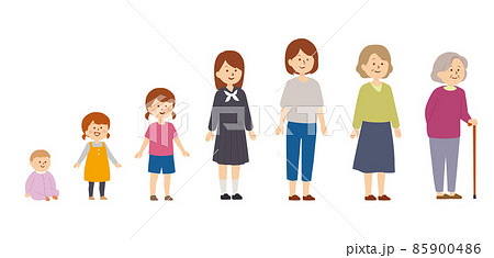 女性の成長過程のイラスト 正面
