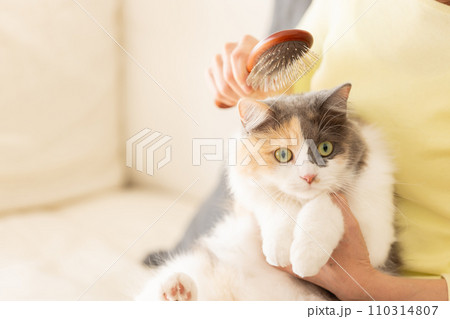 猫のブラッシングをする女性(猫・飼い主)
