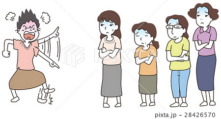 文句を言う女性と困る女性達