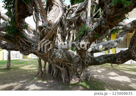沖縄県 伊平屋島 伊平屋小学校校庭のガジュマル
