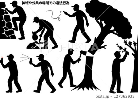 神域や公共の場所での迷惑で罰当たりな行為7選 シルエットセット