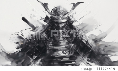 墨絵で描かれたサムライ 戦士「AI生成画像」