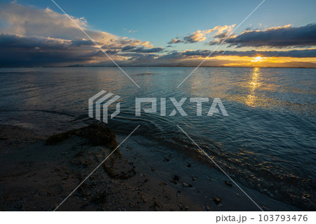 早朝の滋賀県大津市坂本城址公園か湖東の早朝風景