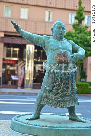 国技館通りの「横綱土俵入りの像(不知火型)」(JR両国駅東口付近/東京都墨田区両国)