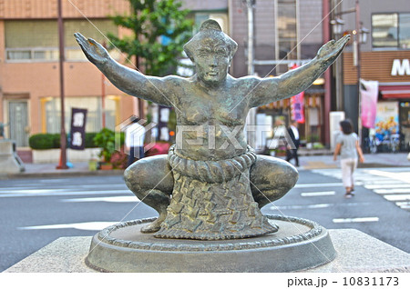 国技館通りの「横綱土俵入りの像(不知火型)」(JR両国駅東口付近/東京都墨田区両国)