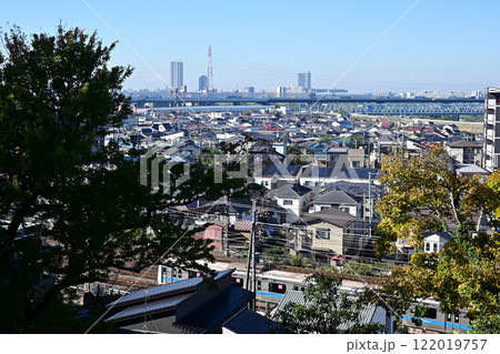 松戸市街と常磐線、戸定ヶ丘歴史公園から