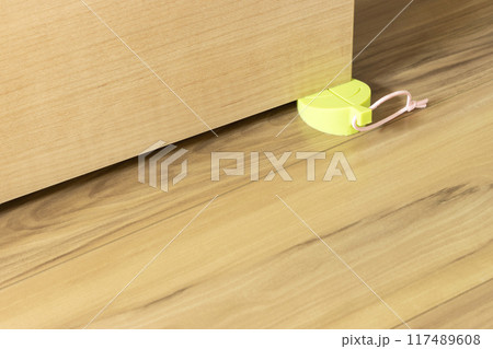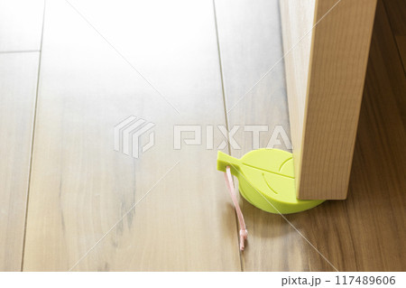 ドアストッパーで開いたままのドア