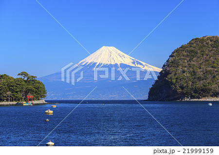 鳥居と駿河湾と富士山 「沼津市戸田 御浜」
